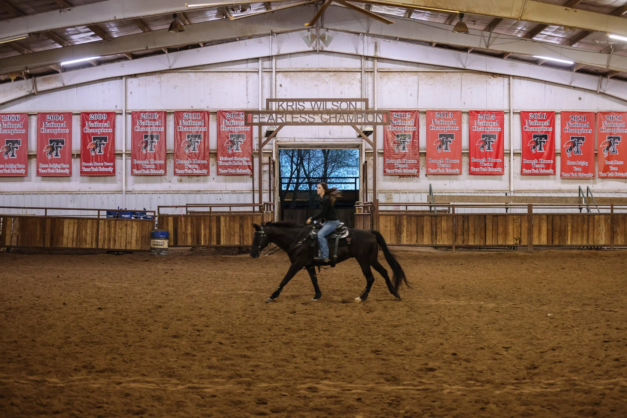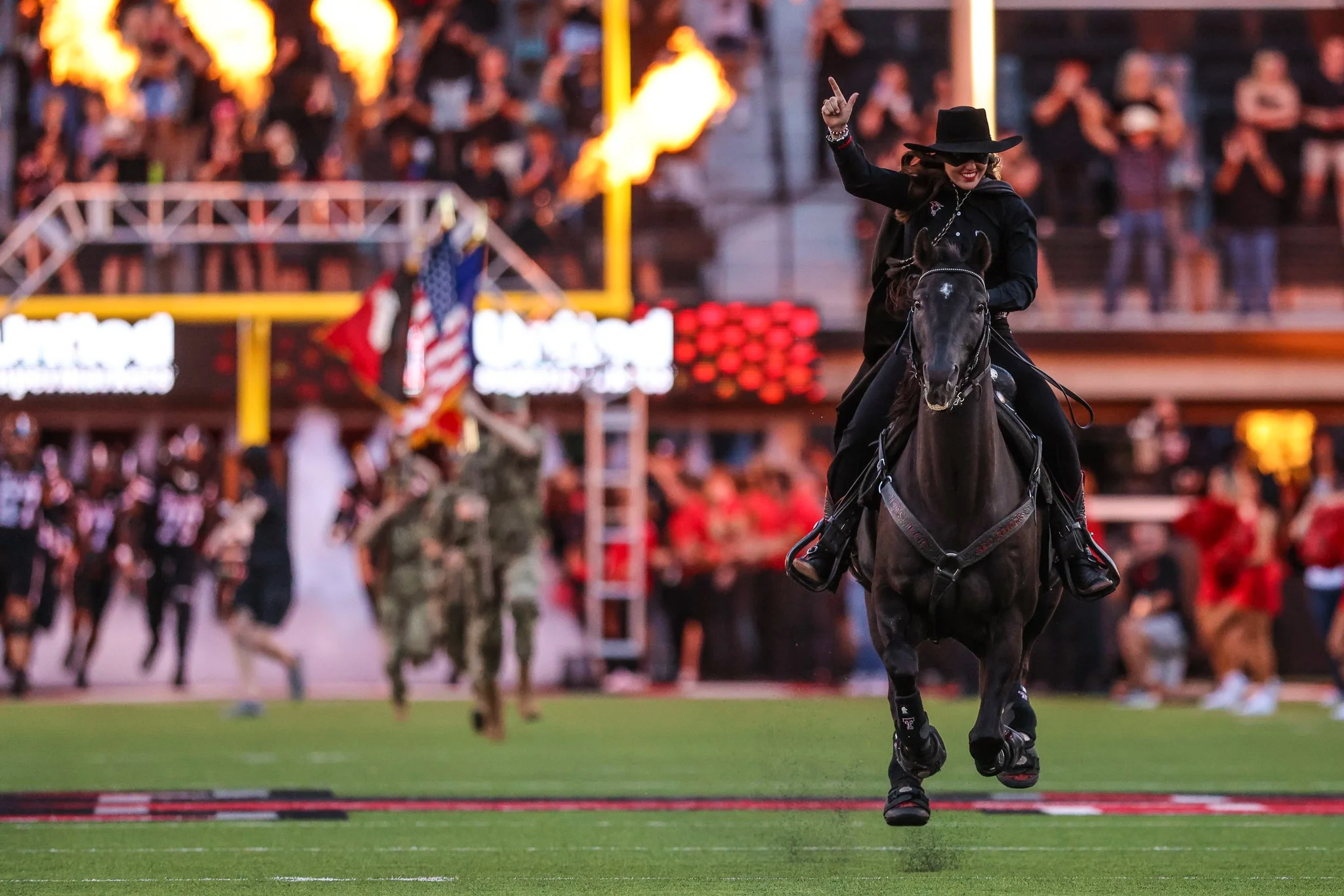 Ellie Brown, the 63rd Masked Rider, prepares Centennial Champion, her horse, for gameday activities during Texas Tech's football games. The runout, while being a traditional part of Tech football gamedays, takes time, effort and care to prepare for.